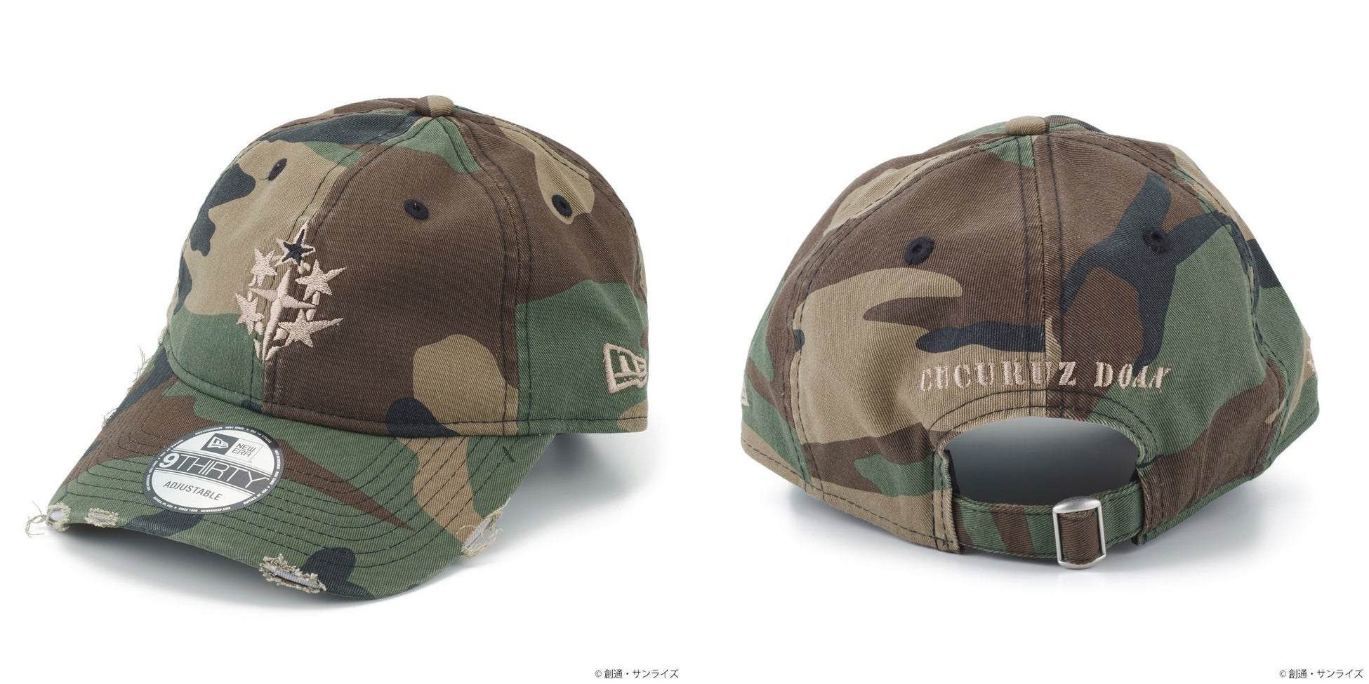 フロントパネルに芯がなく柔らかな被り心地の9TWENTY™の基本的な特徴はそのままに、クラウンがやや深めにアレンジされたシルエットの9THIRTY™をボディに採用。ジャスタブル仕様でサイズ調整が可能なモデルです。カモフラージュ生地を使用し、ダメージ加工でククルス・ドアンが着用していた帽子の雰囲気を表現しています。中央にドアン専用ザクに施された掠れたサザンクロス隊のモチーフを、サイドにはドアン専用ザクの掠れたジオンマークと「01」を刺繍にて再現。バックには「CUCURUZ DOAN」の文字を刺繍にて表現したこだわりのモデルとなります。