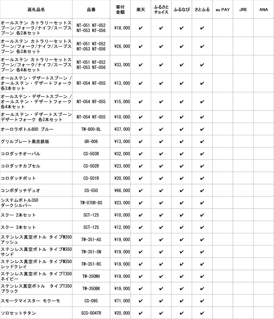 楽天ふるさと納税、ふるさとチョイス、ふるなび、さとふる、JRE MALL ふるさと納税、au PAYふるさと納税、ANAのふるさと納税にて出品の予定!!