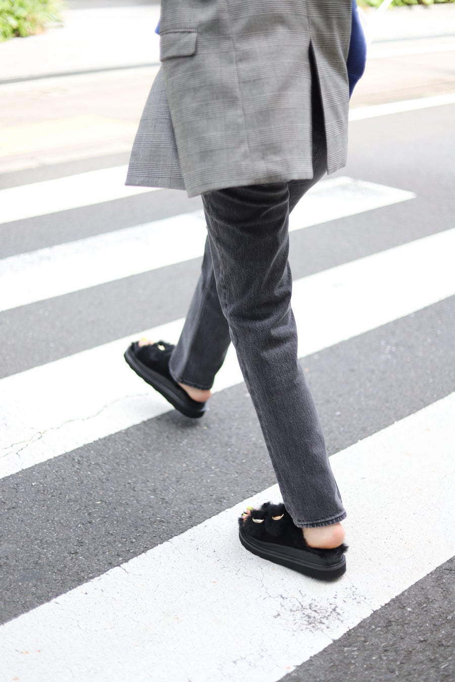 ②モノトーンスタイルに映えるグレーは、SLOBE IÉNAでしか手に入らないカラー別注。