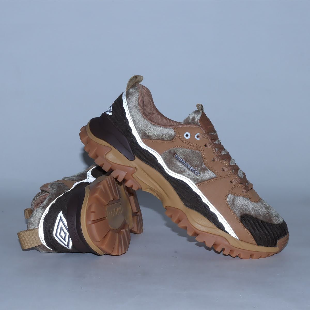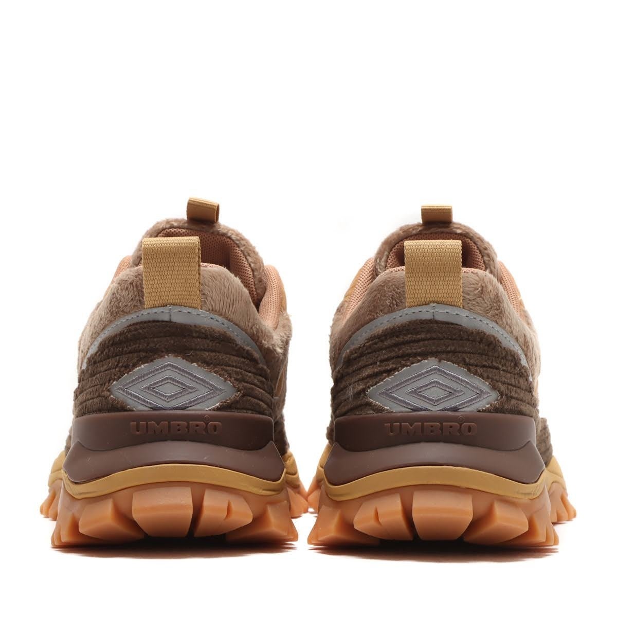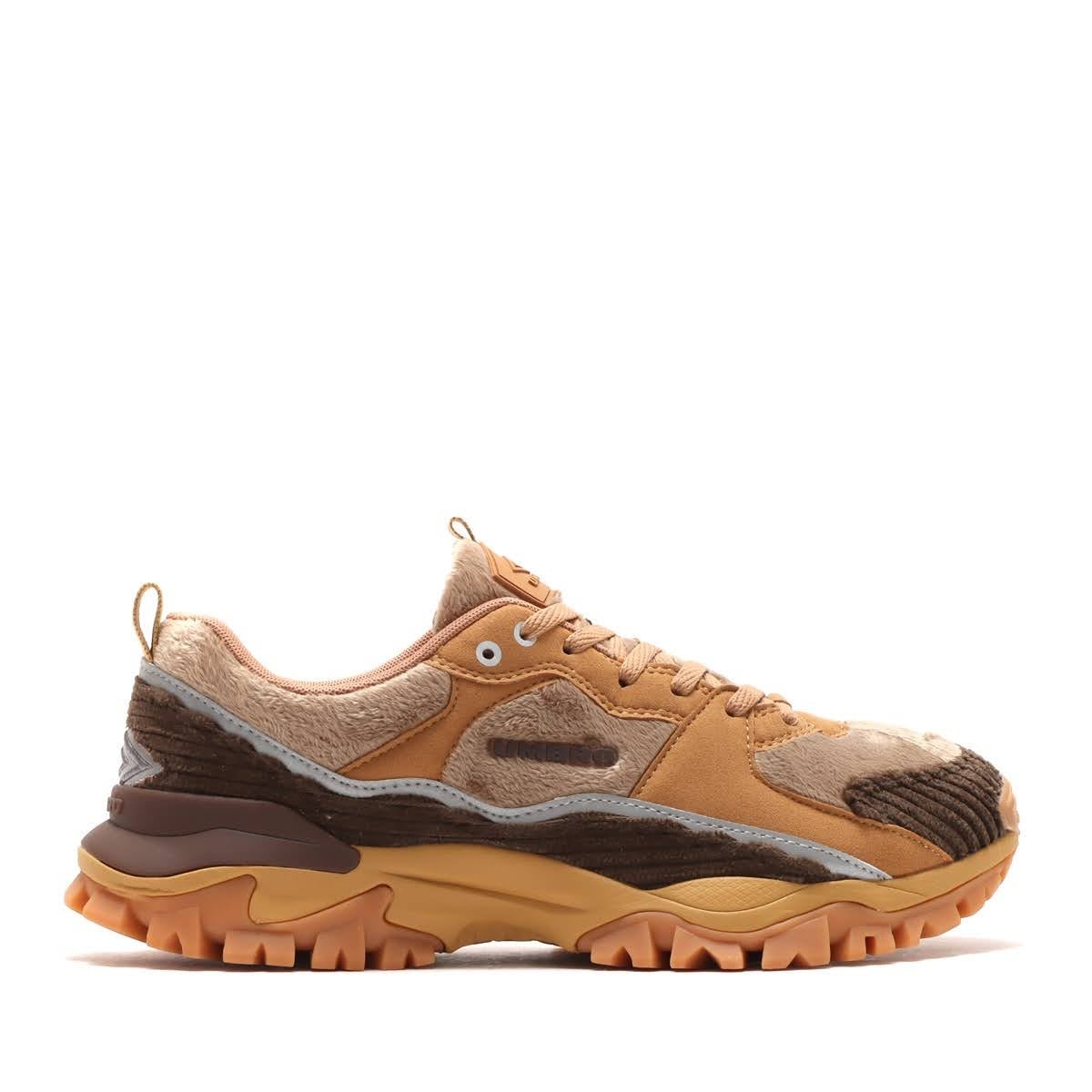 サッカースパイクのスタッド部分をソールのデザインに大胆に落とし込んだデザインで大ヒットしたボリューム感のあるスニーカー「BUMPY」をベースに、全体をブラウンカラーでまとめ、ボア、コーデュロイ、スウェードと異素材をミックスする事により存在感のデザインに。