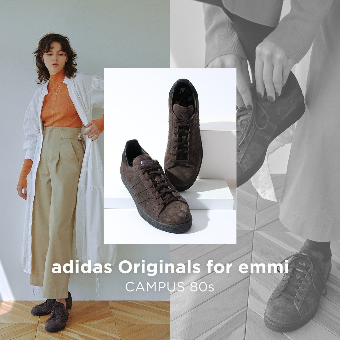 adidas Originals の人気モデル Campus 80s を深みのあるダークブラウンでカラーリング。