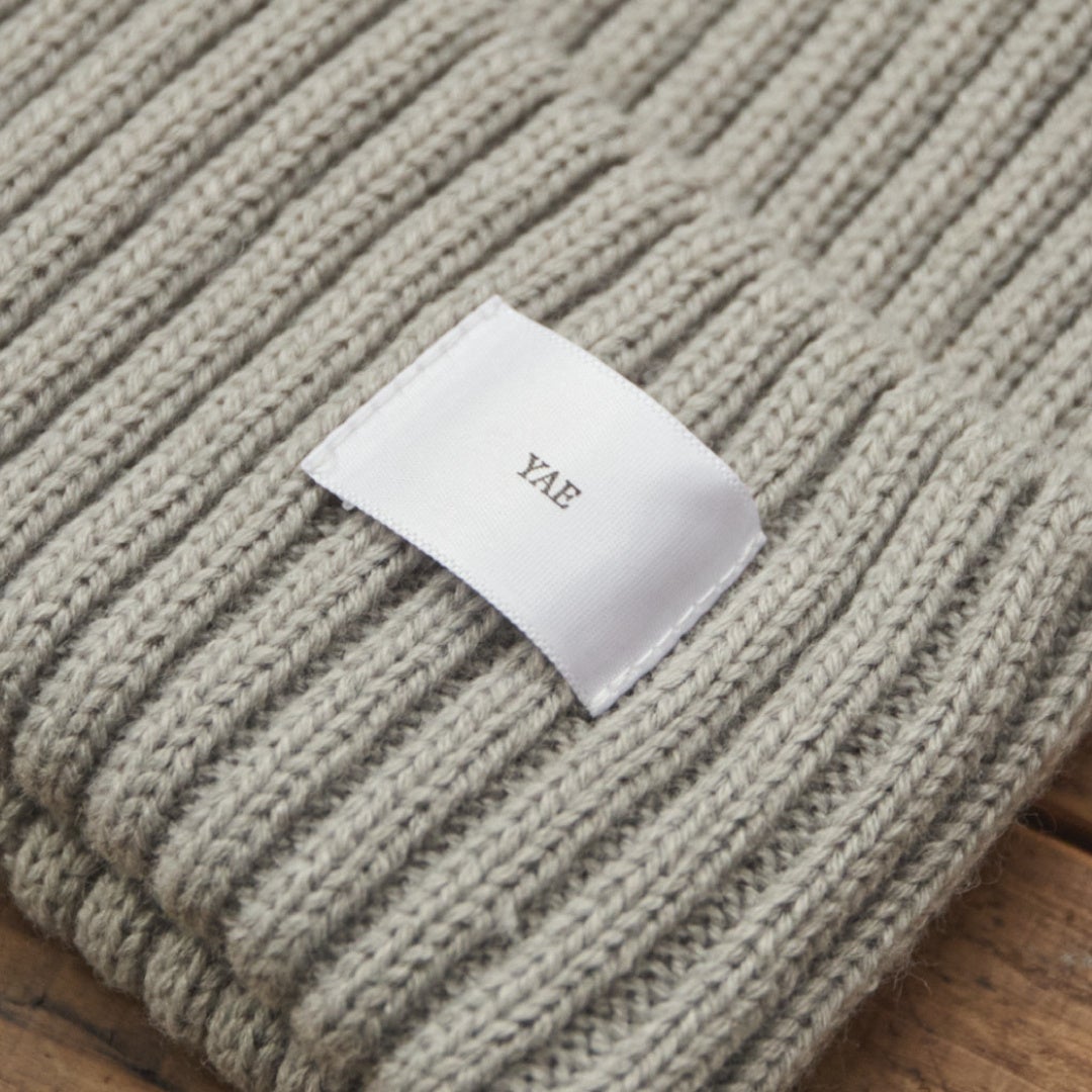 今回の第1弾では、トートバッグとニットキャップが登場。トートバッグは、作品のキーアイテムのひとつ、「ライラック」をプリントしたデザインに仕上げました。バッグの生地と同色でさりげなく施した刺繍ロゴもポイントです。また、ニットキャップは、作中の90年代後半の印象的なシーンの一つである、也英と晴道のニットキャップ姿から着想を得たアイテム。2色のカラーには、それぞれの二人のネームを配しています。