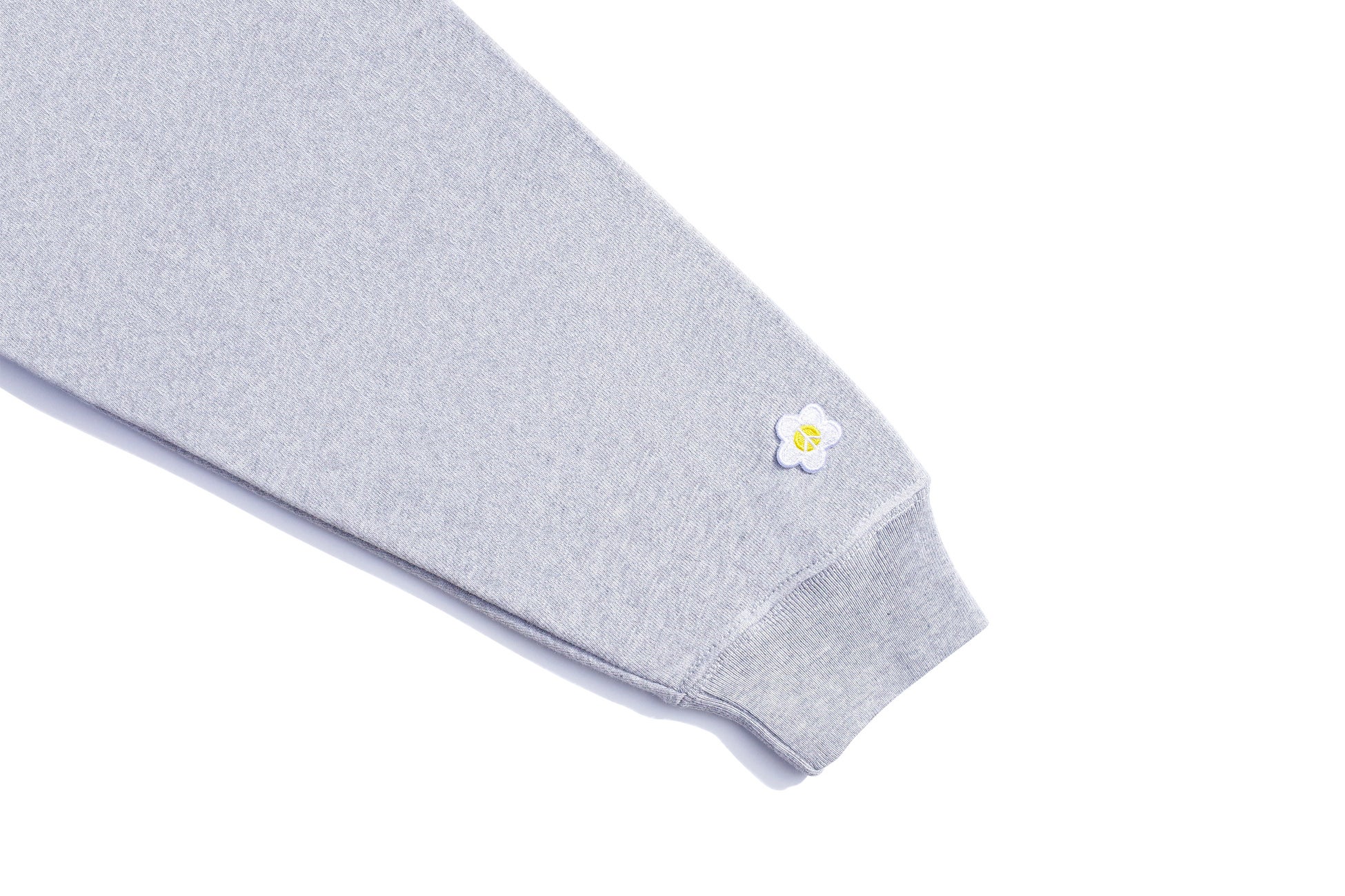 袖部分にはマークハーンのアイコニックなピースフラワーワッペンが施され、柔らかな風合いを持つ厚手のコットンボディを採用。裏地にはパイル生地を使用し、汗を素早く吸収し快適な着心地を提供します。