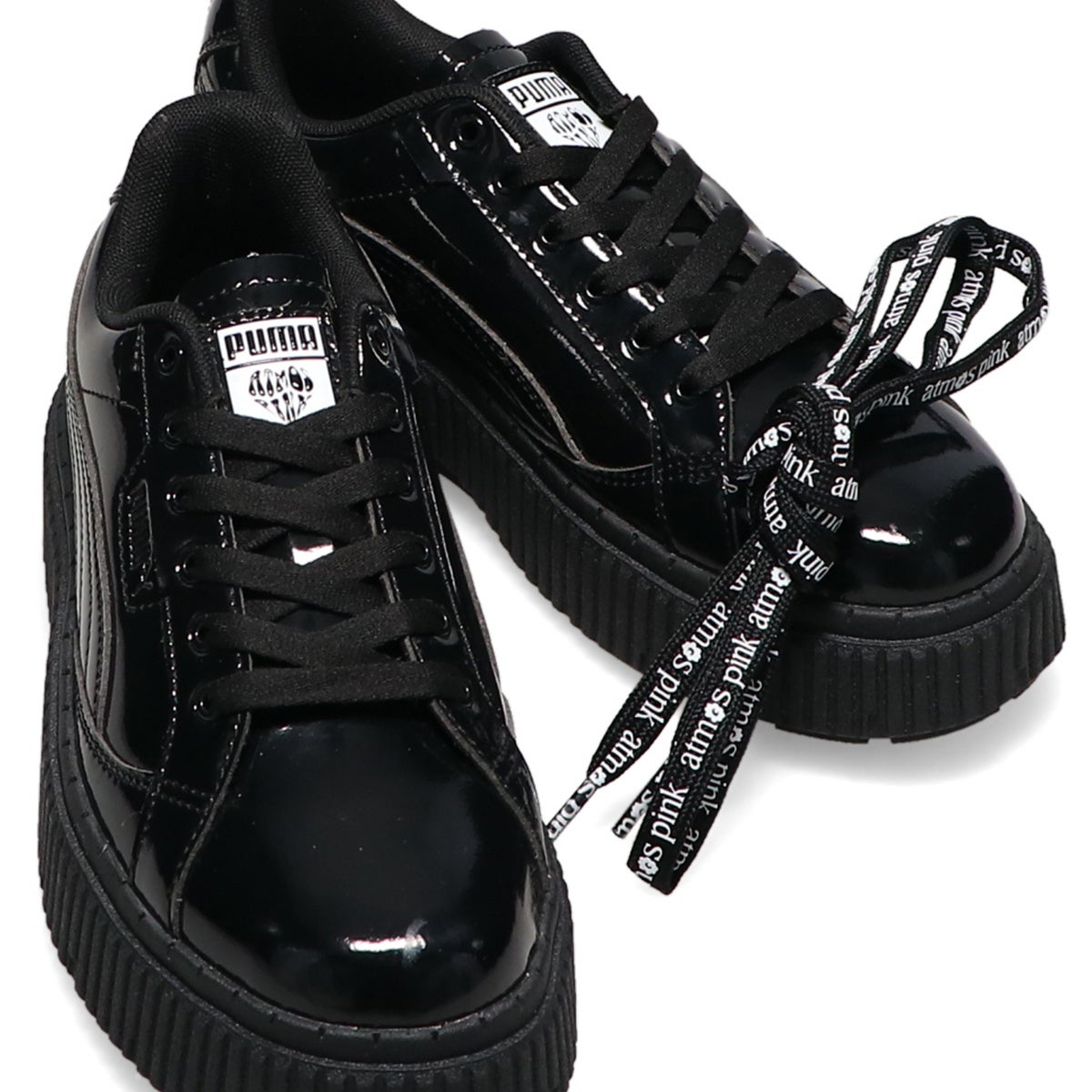 atmos pinkとPUMAの2023年最初のコラボレーションは、今シーズン登場するPUMAのニューモデル「DINARA」! アッパーにはパテントを使用し、上品に大人っぽく履きこなせるクールな印象♡ ブラックカラーは幅広いコーディネートにも合わせやすく、ヒールのようなソールデザイ ンは「DINARA」ならではの可愛いポイントです。