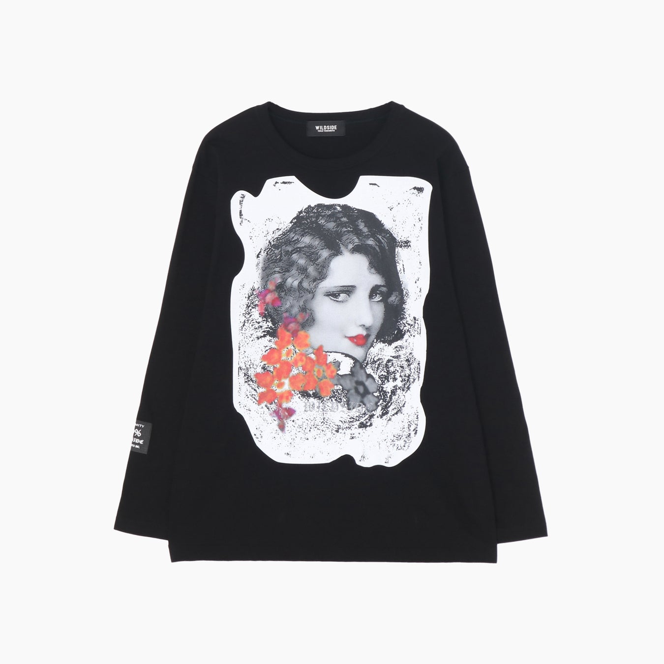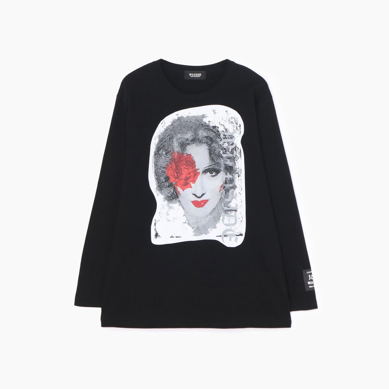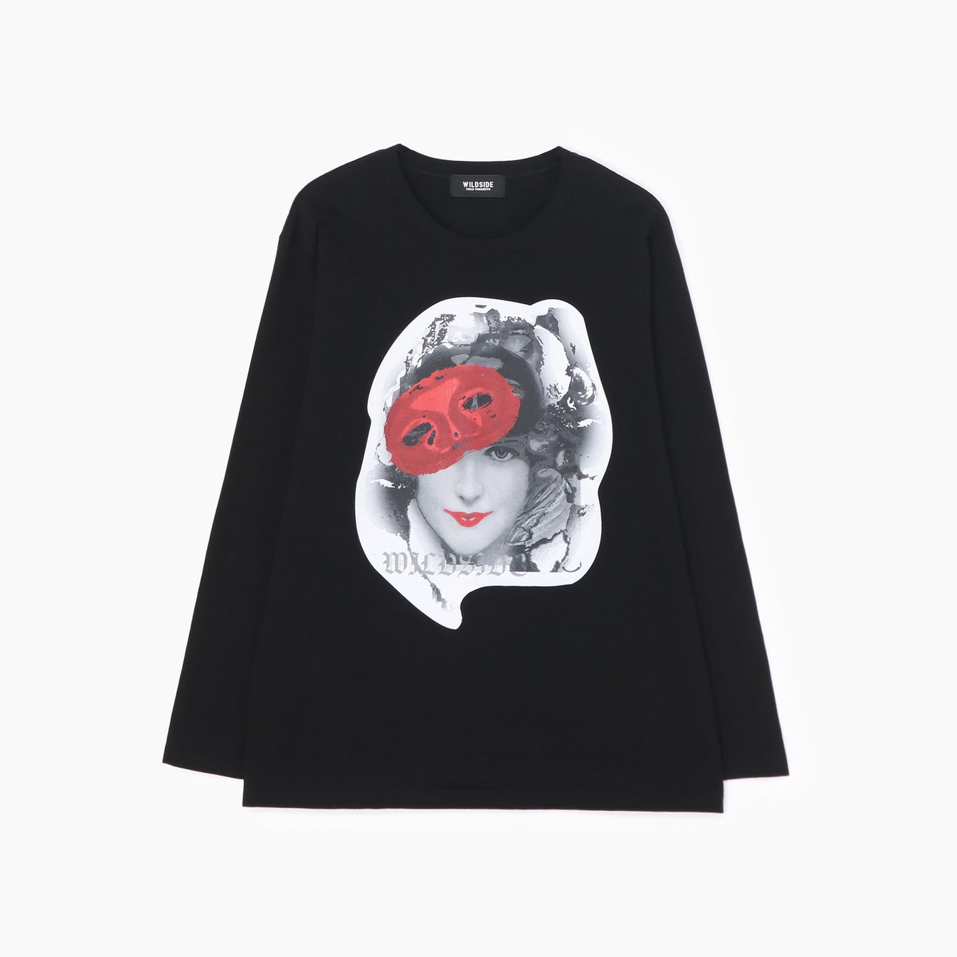 新たに登場するのは、黒のロングスリーブカットソーに、それぞれ異なるアートワークをフロントにプリントしたシリーズ。1月25日に発売したボーダーカットソー同様に、魅惑的な眼差しを向ける赤い唇の女性の顔には、表情を隠すかのように蝶、薔薇、アイマスク、花があしらわれています。コラージュのように白い縁取りを施したアートワークは、黒無地の生地に浮かぶようにプリントをすることで、白と黒のコントラストが際立つアイテムとなっています。