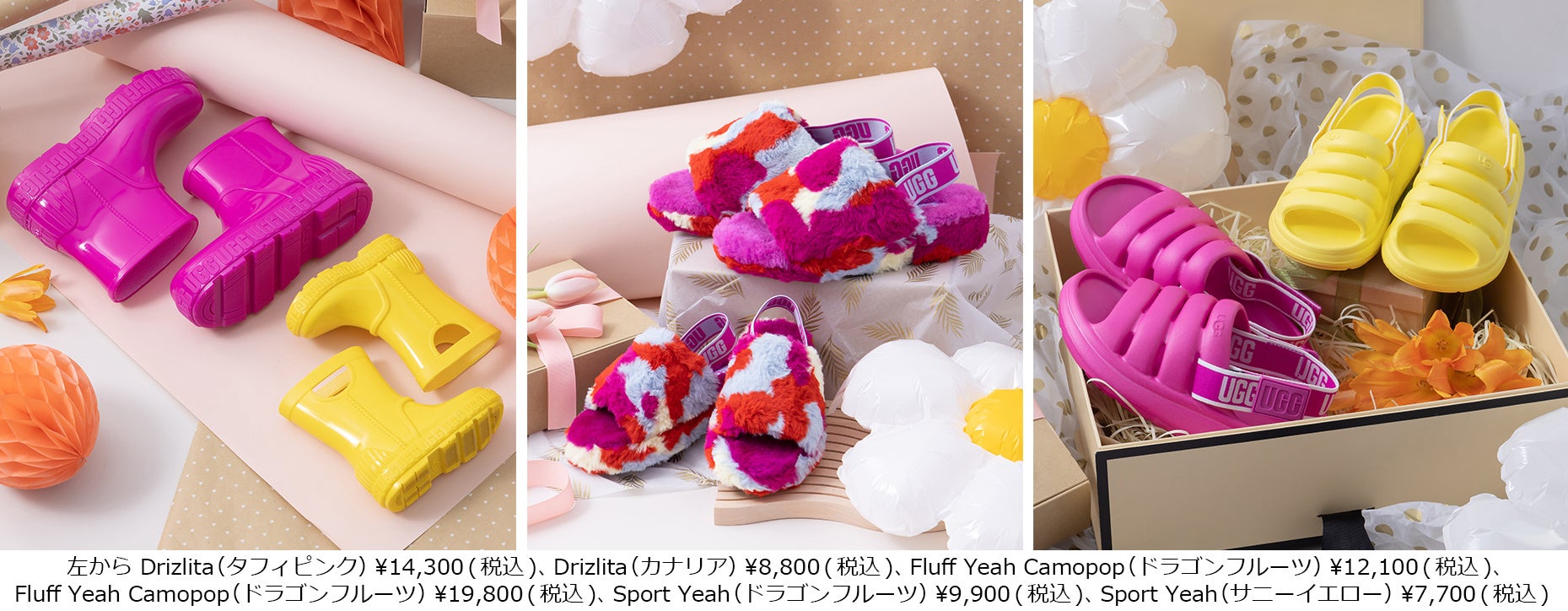 UGG®ならではのコンフォートでリラックスできる、ちょっと贅沢でお洒落なセレクションは、ワクワクする春に相応しい虹色のスリッパや空に浮かぶ雲をイメージしたサンダルとふわふわのスリッパをはじめ、カラフルなシューズやアパレル、トレンドの厚底サンダルや幅広いスタイルに合うニュアンスカラーなど、選ぶのも楽しくなるアイテムが沢山!親子コーデが楽しめるシューズもあるから、ママとして頑張っている自分へのご褒美にお子さんとお揃いで買ったり、パパからのプレゼントとしてもGOOD!!