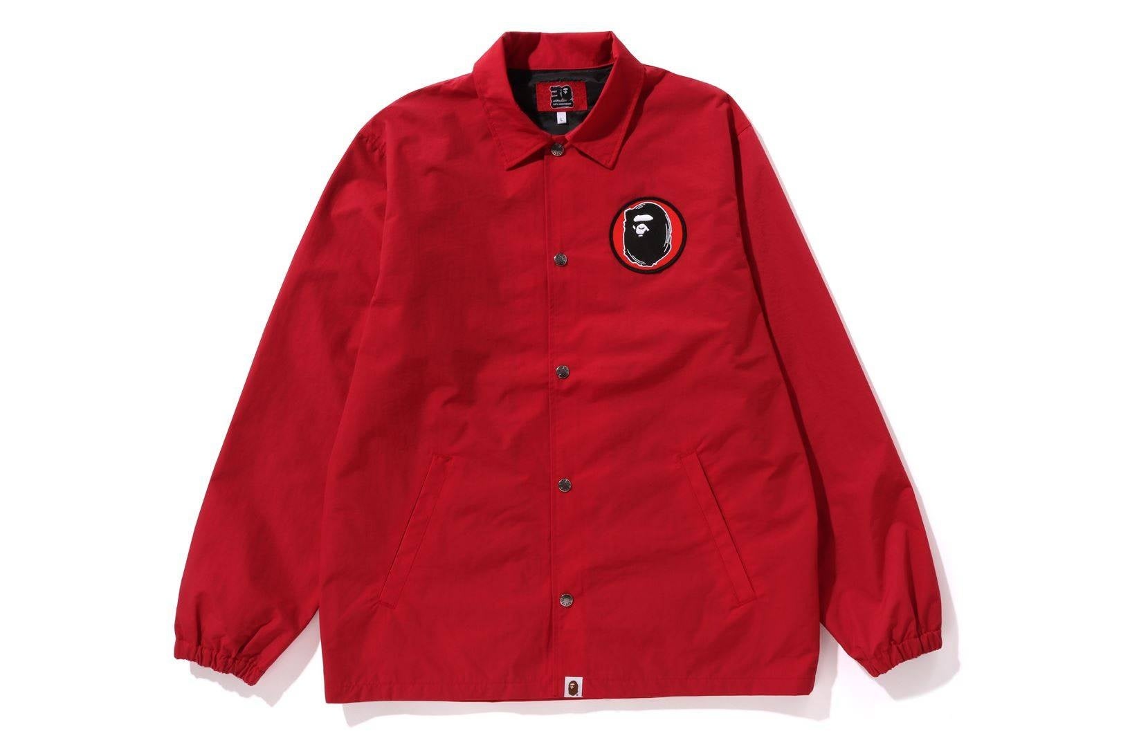コーチジャケットは、ネイビーとレッドの2色展開。左胸に30周年ロゴのAPE HEADを、背面に30周年記念ロゴと「宇宙猿人」「猿人不打猿人」と書いた千社札のグラフィックをコラージュしました。