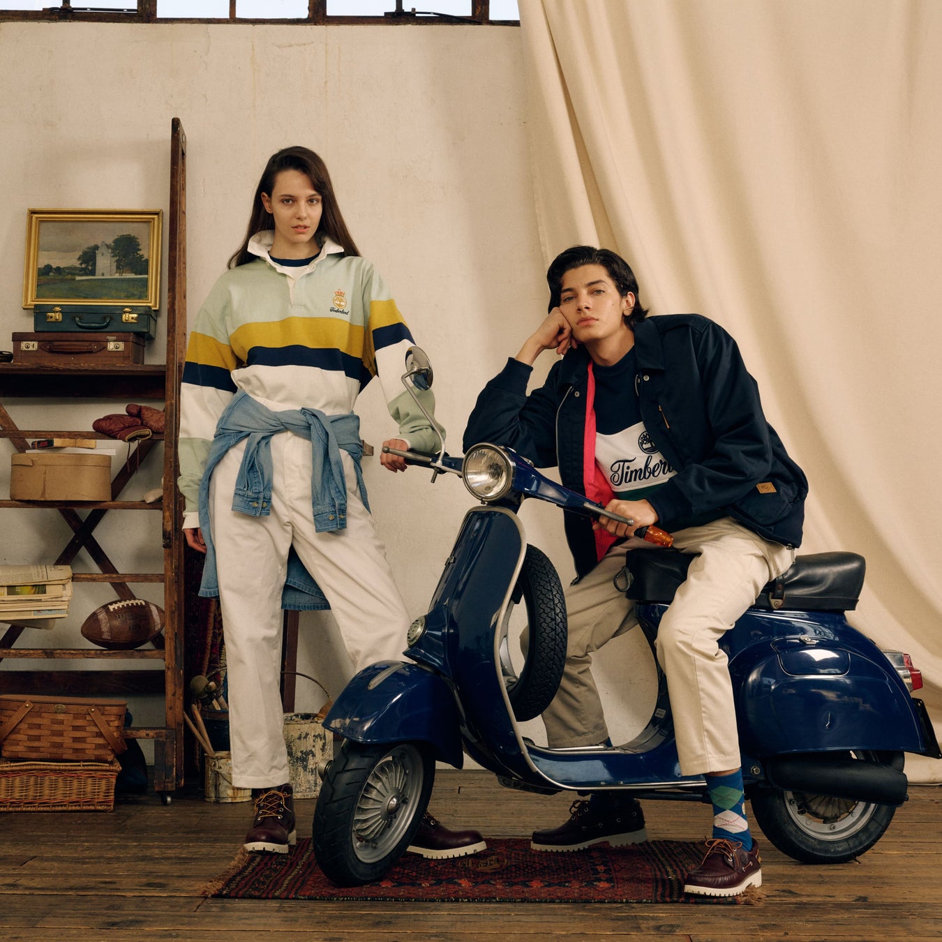 第2弾となるSS24シーズンテーマは “ 86 MILAN’’において、当時の若者の流行を席捲した“PANINARO”。1986年当時、イタリア・ミラノの街は、ポップなカラーダウンにジーンズ、そしてロールアップされた足元には、アーガイルチェックのソックスに「ティンバーランド」アイコンシューズである6インチプレミアムウォータープルーフブーツや3アイクラシックラグのデッキシューズを合わせ、スクーターに乗ってパニーニを頬張る、そんな若者達で溢れていました。