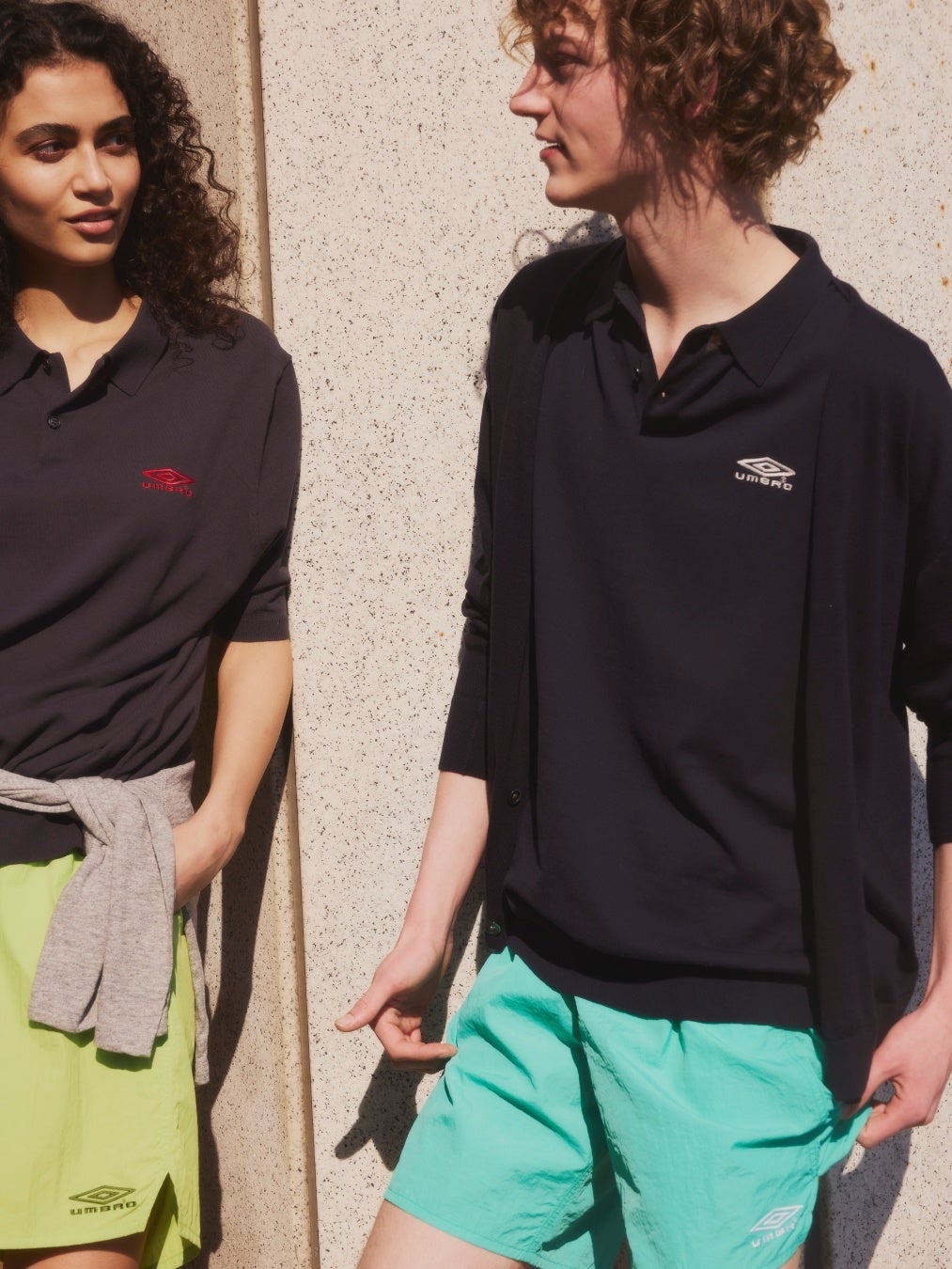 このコレクションは、UMBROの100周年を迎える今年に合わせて制作されました。スポーツウェアのアイデンティティを尊重しながらも、街に馴染むデザインを追求し、日常着として活用できるアイテムに仕上げています。ウォームアップアノラックパーカ、コットンセーター、ニットポロシャツ、ウォームアップショーツの4型のカプセルコレクションは、素材選定やオリジナルパターン、サイズバランスの追求、実用性の考慮など、細部にまでこだわって作り込まれています。第一弾の2型は2024年3月9日に、第二弾の2型は2024年4月12日に発売です。