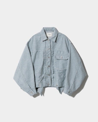 上下反転して着用が可能な2wayデニムブルゾン。両胸ポケットがポイントの3rd型ブルゾンは、上下を逆さまにして着用することで、1st型デニムブルゾンに変化します。時代背景の異なる2つのデニムブルゾンが1着でたのしむことができます。
