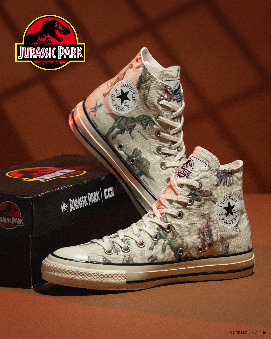 世界中の映画ファンに愛され続ける1993年公開の名作『ジュラシック・パーク』とCONVERSEの初コラボレーションモデルが登場。2025年8月8日(金)、シリーズ最新作『ジュラシック・ワールド/復活の大地』の公開に合わせて、“ALL STAR AGED”シリーズから3タイプのスペシャルモデルが発売されます。洗い加工や生成りテープによる“古着のような味わい”をベースに、ジュラシック・パークの象徴的モチーフを落とし込みました。映画の世界観と、クラシックなオールスターの魅力が融合した、必見のコラボレーションです!!
