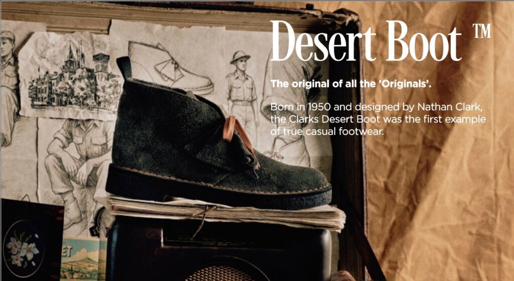 第二次世界大戦中、英国軍兵士がエジプト・カイロのバザールで履いていたシューズに着想を得た創業者一族ネイサン・クラークは、その実用性とデザイン性を融合させ、モダンなブーツとして世に送り出したのです。