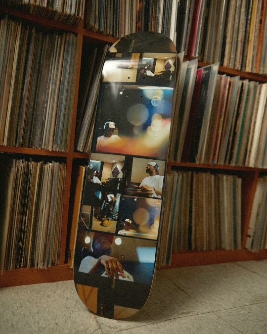 本コレクションには、象徴的なプルオーバーフーディー、カスタムTシャツ2型、折りたたみ式レコードクレート、フォトスケートデッキなどをリリース。