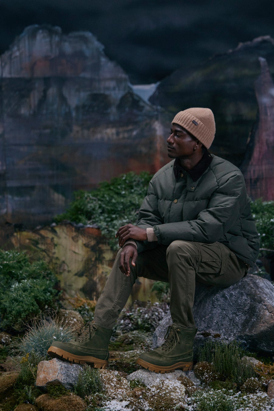 本コレクションの核となるのは、SORELが今秋冬に発表した新コレクション”Horizon”シリーズをベースにした3つのフットウェアモデル。