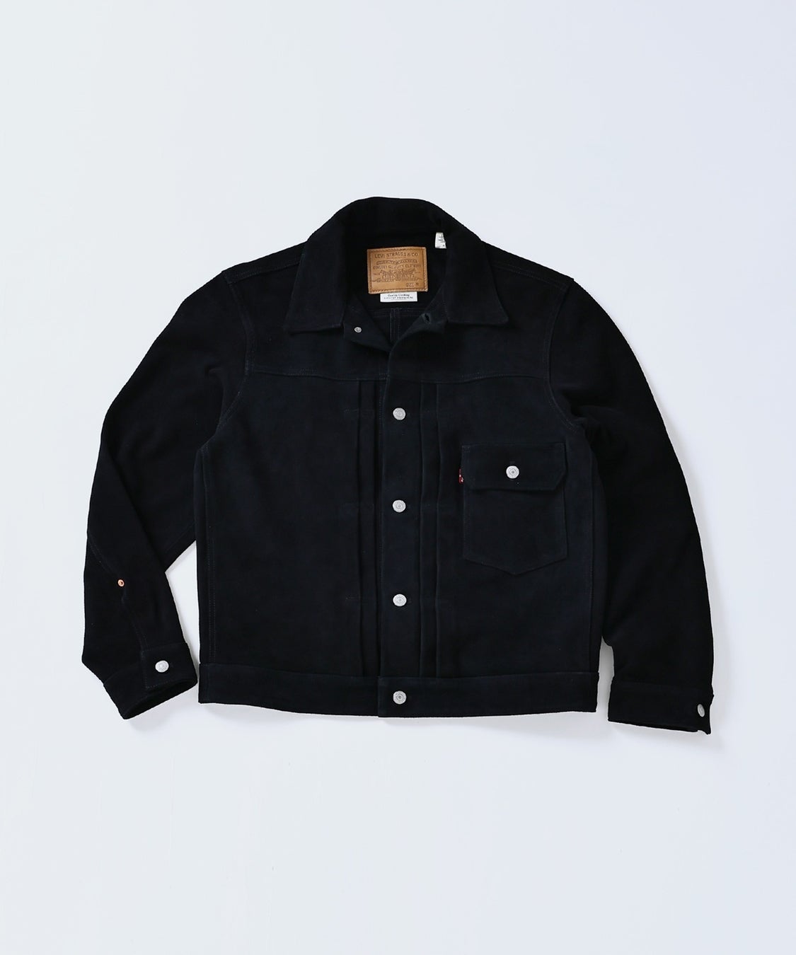 ファースト原型には存在しないブラックのスエードレザーで別注。 スエードならではの落ち着いたマット感と、ほのかな艶が カジュアルなジャケットに品を与えています。 一枚仕立てで、全サイズがセパレートしたTバック仕様。