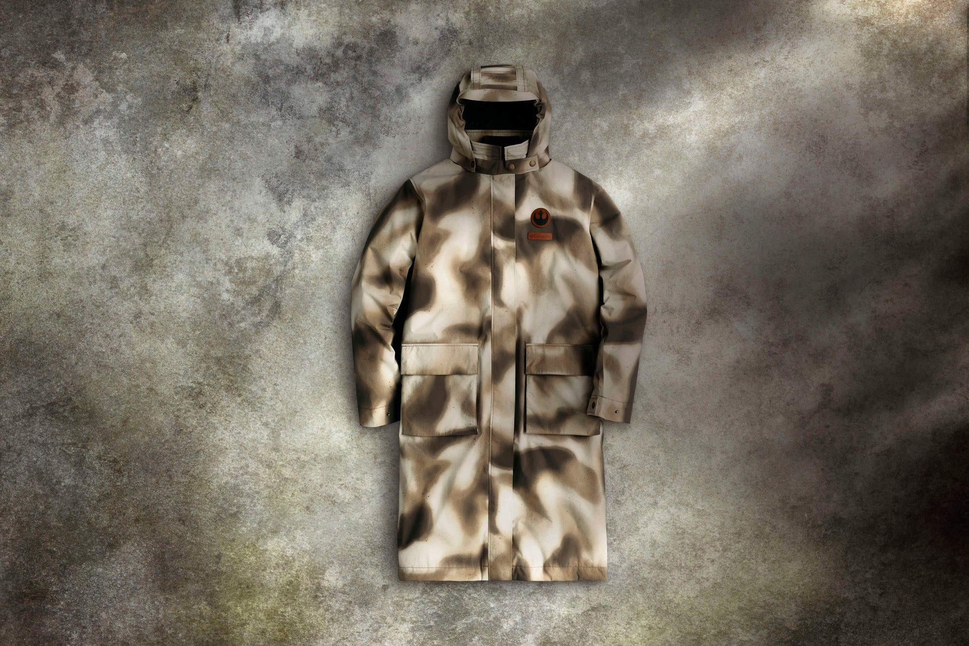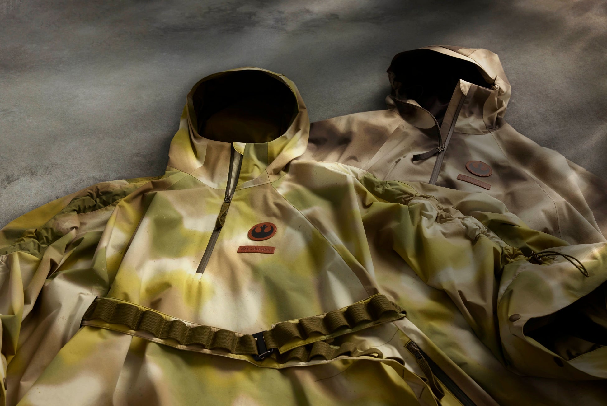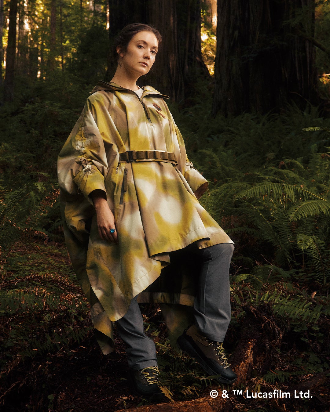 多用途に使えるポンチョは、「エンドア」に降り立った反乱軍の戦士たちに着想を得ており、ハイキングからスピーダー・バイクまで、どんな自然界環境にも対応可能な防水透湿テクノロジーと本格的なディテールが取り入れられています。