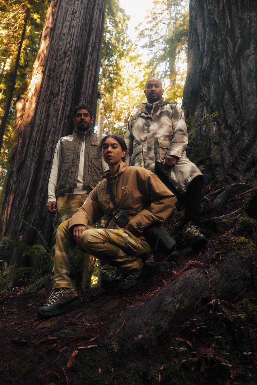 スター・ウォーズ続三部作でコニックス中尉を演じ、スター・ウォーズ映画の数々でプリンセス・レイア・オーガナを演じたキャリー・フィッシャーの娘であるビリー・ラードが本コレクションのキャンペーンビジュアルに登場。ラードは、イウォークに着想を得たフリースをまとった彼女の子どもたちと共に、カリフォルニア州のレッドウッド国立州立公園での撮影に参加しました。(着用フリースは日本での展開はございません)
