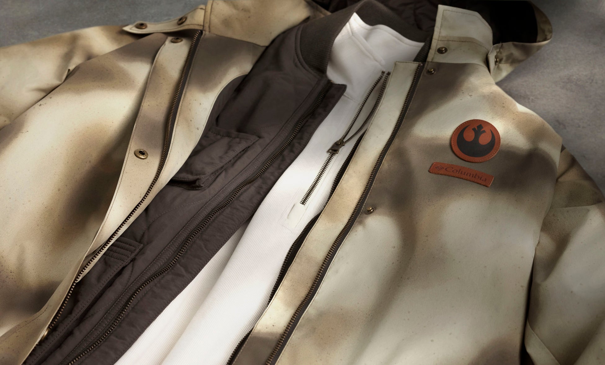 ジェダイの帰還(エピソード6)』の舞台となった森林の衛星「エンドア」がテーマに。ハン・ソロがエンドアで身につけていた戦術装備や、エンドアに降り立った反乱軍の戦士たちに着想を得たアイテムなどが充実。映画衣装に着想を得たオリジナルの迷彩柄、反乱軍の紋章、オーラベッシュ文字のメッセージの装飾など、コロンビアのブランドファン、スター・ウォーズのファン両者に楽しんでいただけるディテールが施されている!