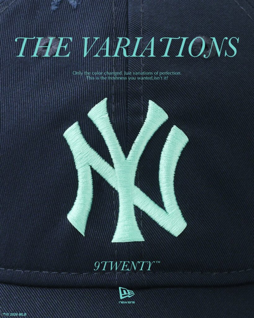 NEW ERA®の人気モデル「9TWENTY™」をベースに、T/C混紡糸を使用したツイル素材へヴィンテージ加工を施し、THE STAND fool so good(s)/JOURNAL STANDARDのロングセラー“NEW YORK YANKEES Robin’s Egg Blue”をカラーバリエーションで展開。クラシックなフォルムに、THE STANDらしいカラーセレクトと空気感を重ねることで、ストリートから日常のスタイリングまで自然に馴染む仕上がりになっている。