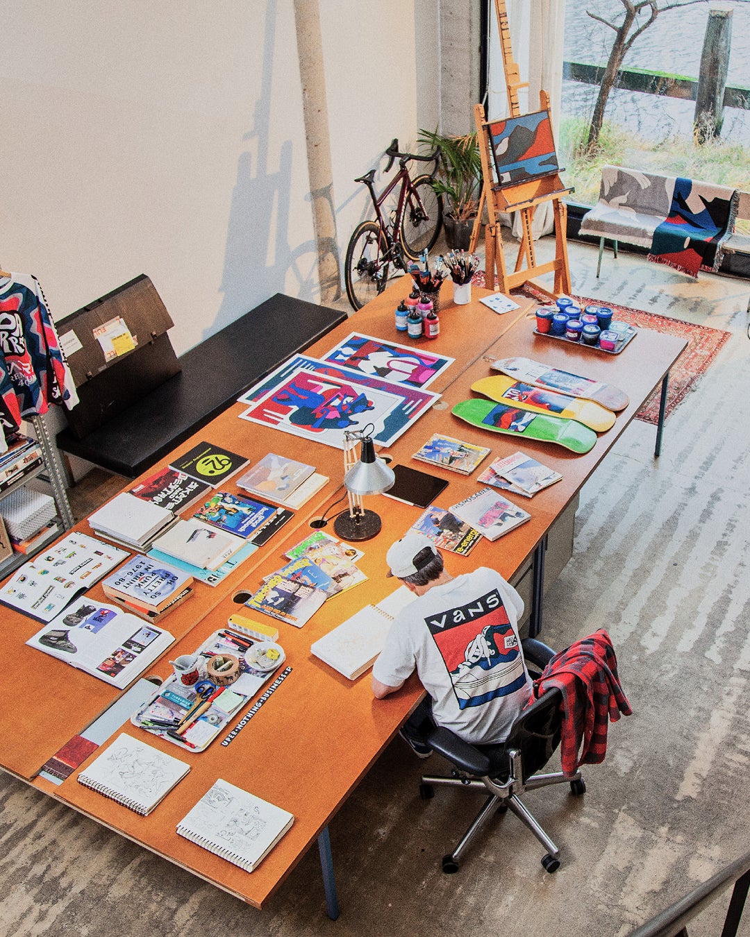 Parraは1990年代初頭にプロスケートボーダーとして活動を開始し、Vansのチームライダーとしてサポートを受けていました。その大胆かつシュールなアートワークが世界中のギャラリーやミュージアムコレクションで高い評価を得るようになった現在、両者の歴史が一周し、今回のコラボレーションが実現。
