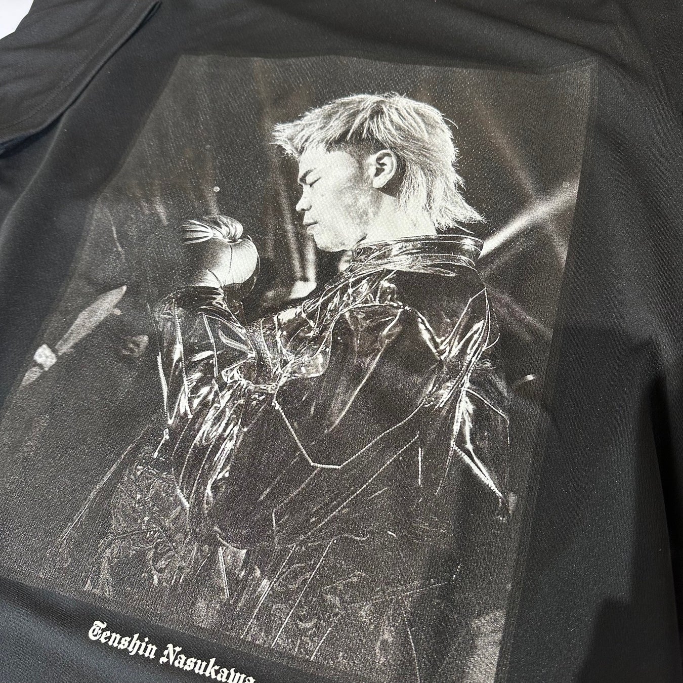 那須川選手リングイン時のフォトを大胆に落とし込んだ一枚。背面には、コラボアイテムであることを示す「reversal」と「TEAM TENSHIN」の文字がプリントされています。