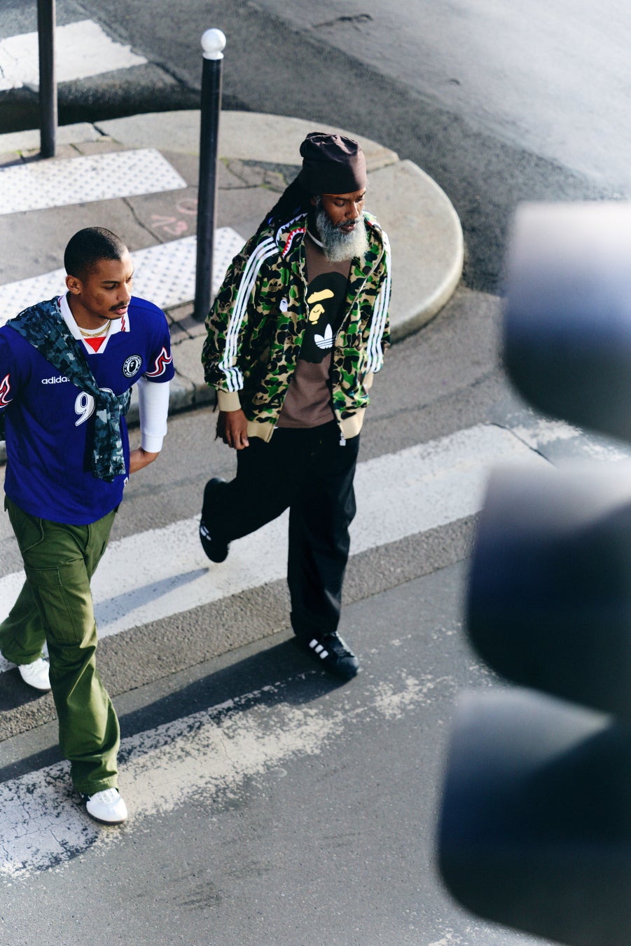 サポーターとストリートウェアファンの両方が自分らしいスタイルを表現できるようデザインした「BAPE® x adidas Originals」。本コレクションは、フットボールのアイコニックなシーンから着想を得たアイテムをラインアップ。